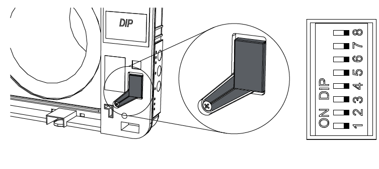 DIP-bryterne befinner seg under dekselet til DIP-bryterne.