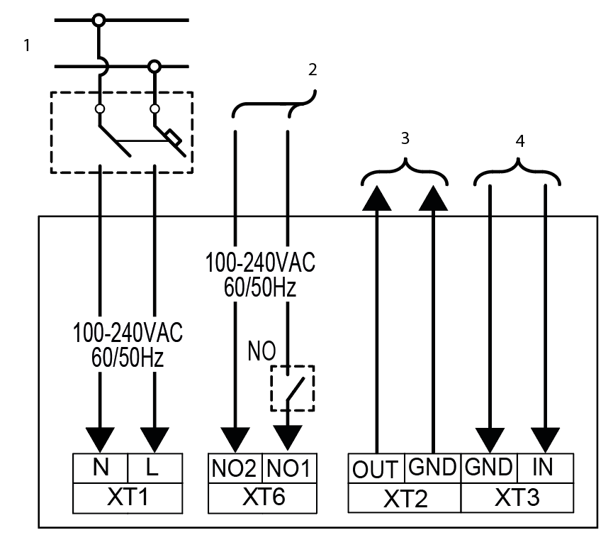 Alarmindikator | Indikatoren lyser eller blinker når det oppstår en feil på enheten. Hvis enhetene er koblet til hverandre, vil alle enheteneslutte å kjøre. Alarmindikatoren blinker på den defekte enheten og lyser på de andre enhetene.Hvis masterenheten mister forbindelsen til det valgte nettverket i mer enn 20 sekunder, vil alarmindikatoren blinke ogEnheten går inn i standby-modus. Slavene signaliserer manglende forbindelse til masterenheten og starter opp automatisk nårmasterenheten er slått på igjen. |
