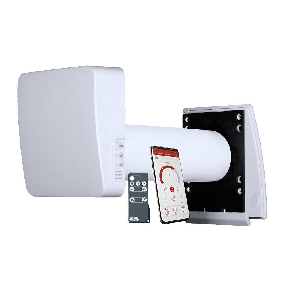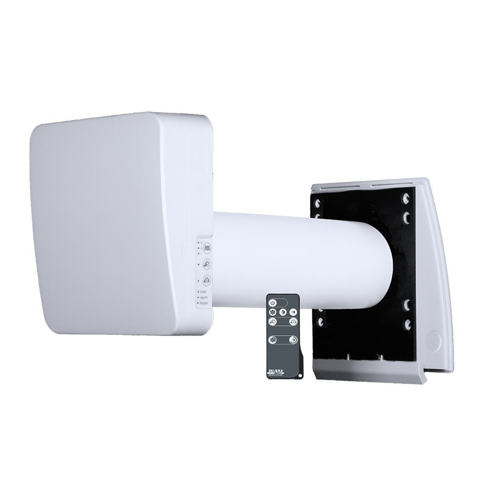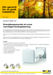 Duka One C4 er en prisvenlig model, der bl.a. kan sættes ind i eksisterende Ø105 mm eller 150×150 mm friskluft ventil og på en nem måde kan friskluft ventilen opgraderes til en varmegenvindingsløsning. Derved kan der nemt skabes et sundt indeklima.