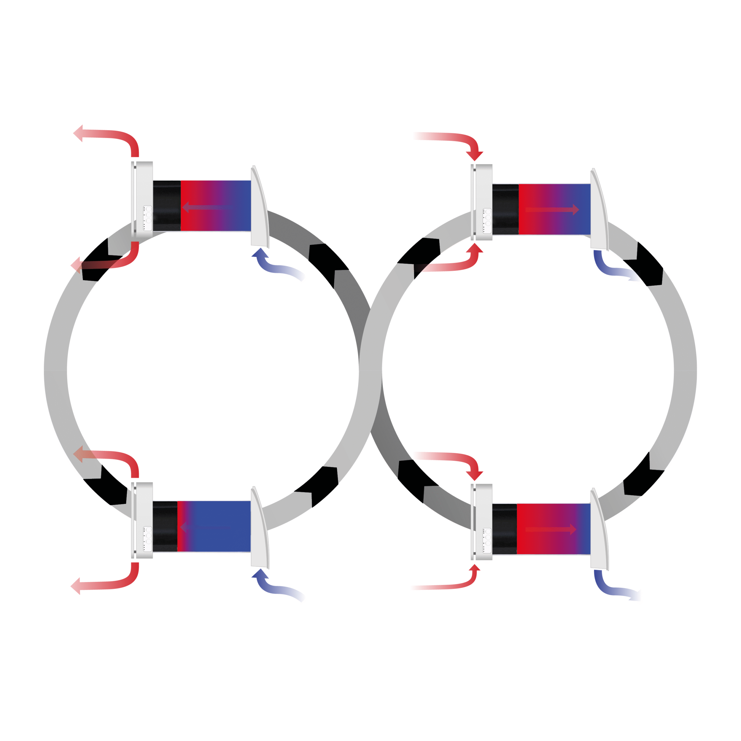 I 70 sekunder trekker enheten ut luft, der varmen fra avtrekksluften lagres i enhetens keramiske kjerne.