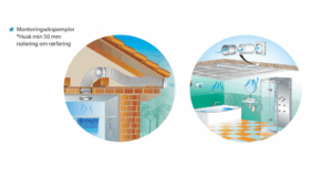 Viften kan monteres i alle vinkler.