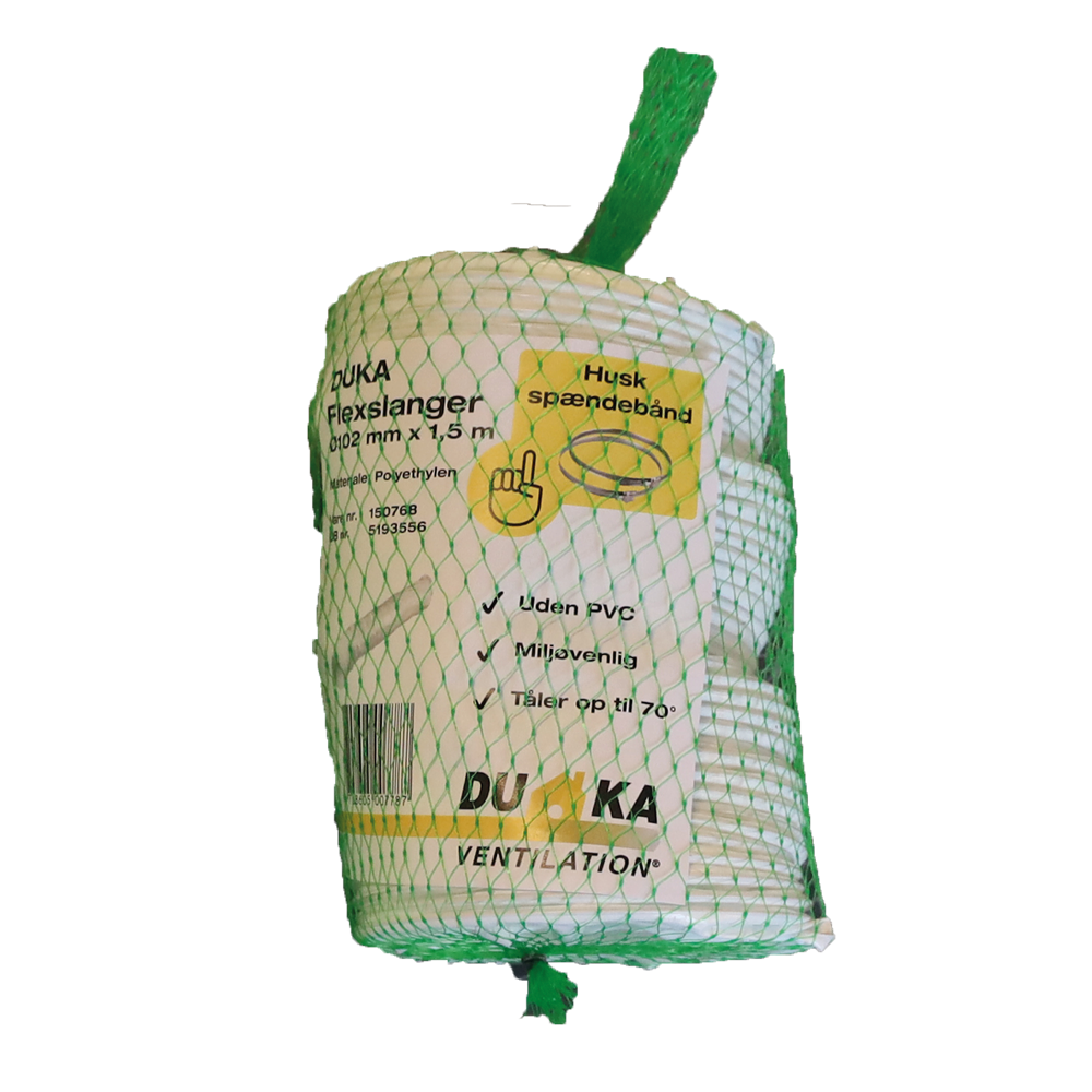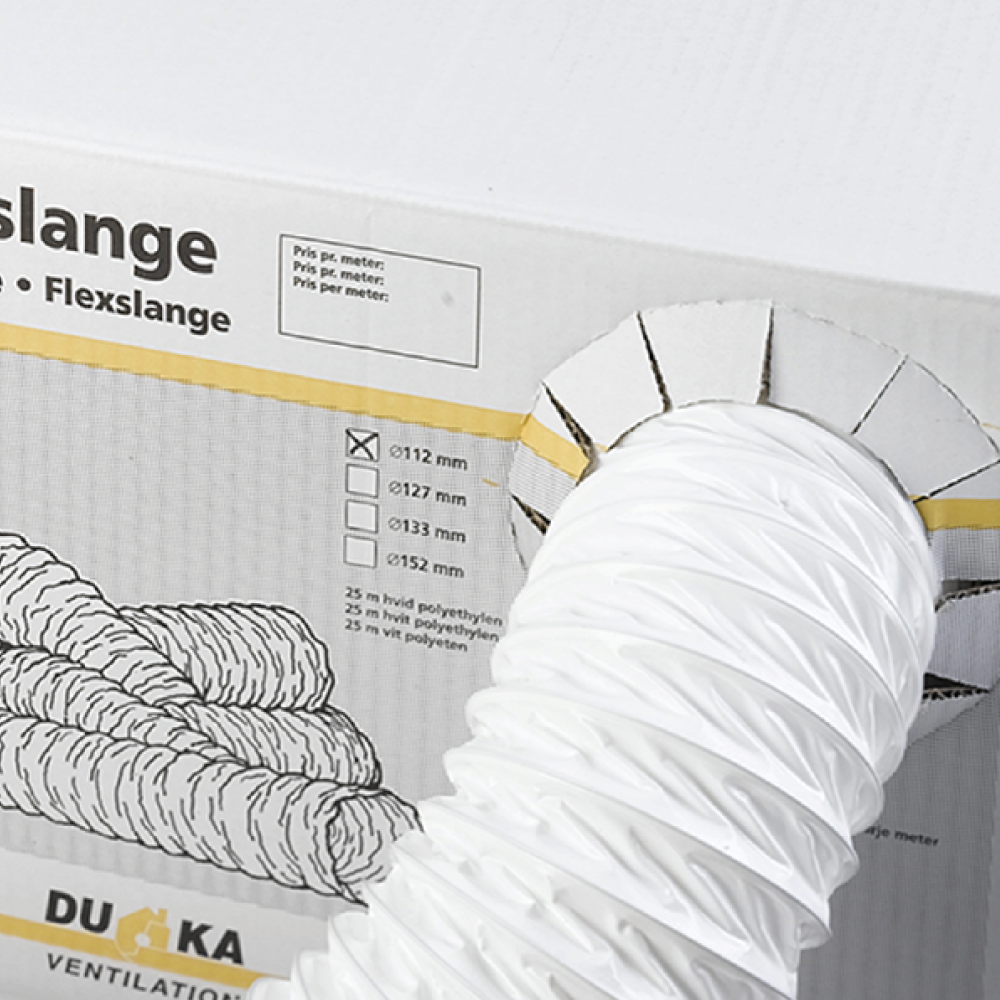 Ved vedvarende temperaturforskjeller på 8 grader eller mer i avtrekksluften og temperaturen i rommet der den fleksible slangen er plassert, kan Duka Ventilation ikke garantere at 25 eller 50 mm isolasjon er tilstrekkelig isolasjon mot kondens.
