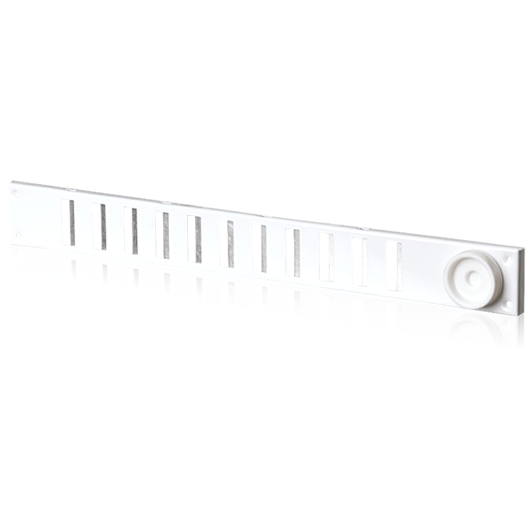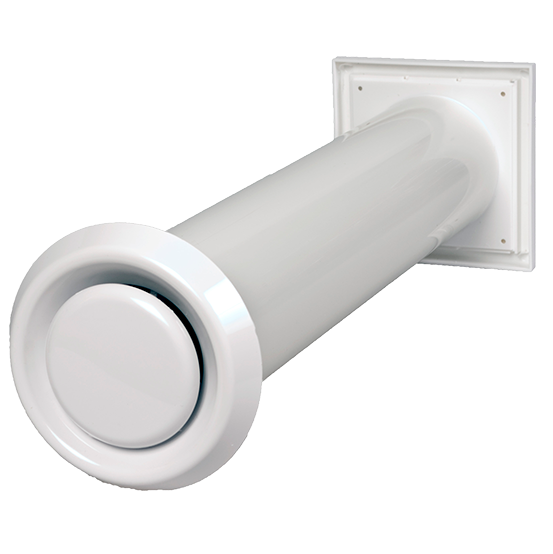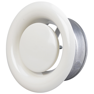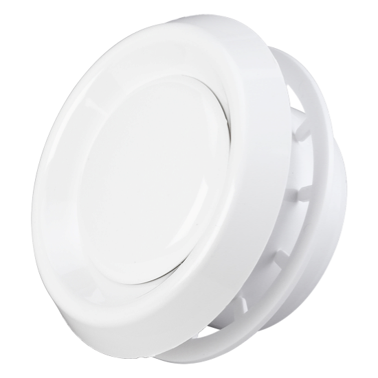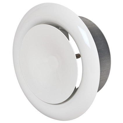 Avtrekksventil med en konstruksjon som sikrer at avtrekksluften ledes optimalt inn i ventilen fra et stort område i rommet. Ventilens bajonettfeste forenkler installasjon og etterfølgende rengjøring