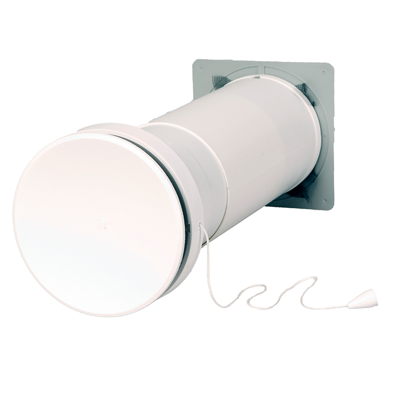 Ventilen har en ramme for enkel montering i ventilasjonsrøret.