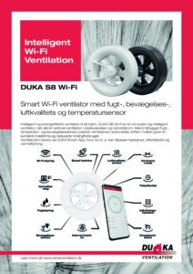 DUKA S8 Wi-Fi er en innovativ og intelligent vifte som sørger for optimal ventilasjon på bad og i oppholdsrom. Med innebygde fukt-, temperatur- og bevegelsessensorer justerer viften automatisk driften for et sunnere inneklima og redusert energiforbruk.