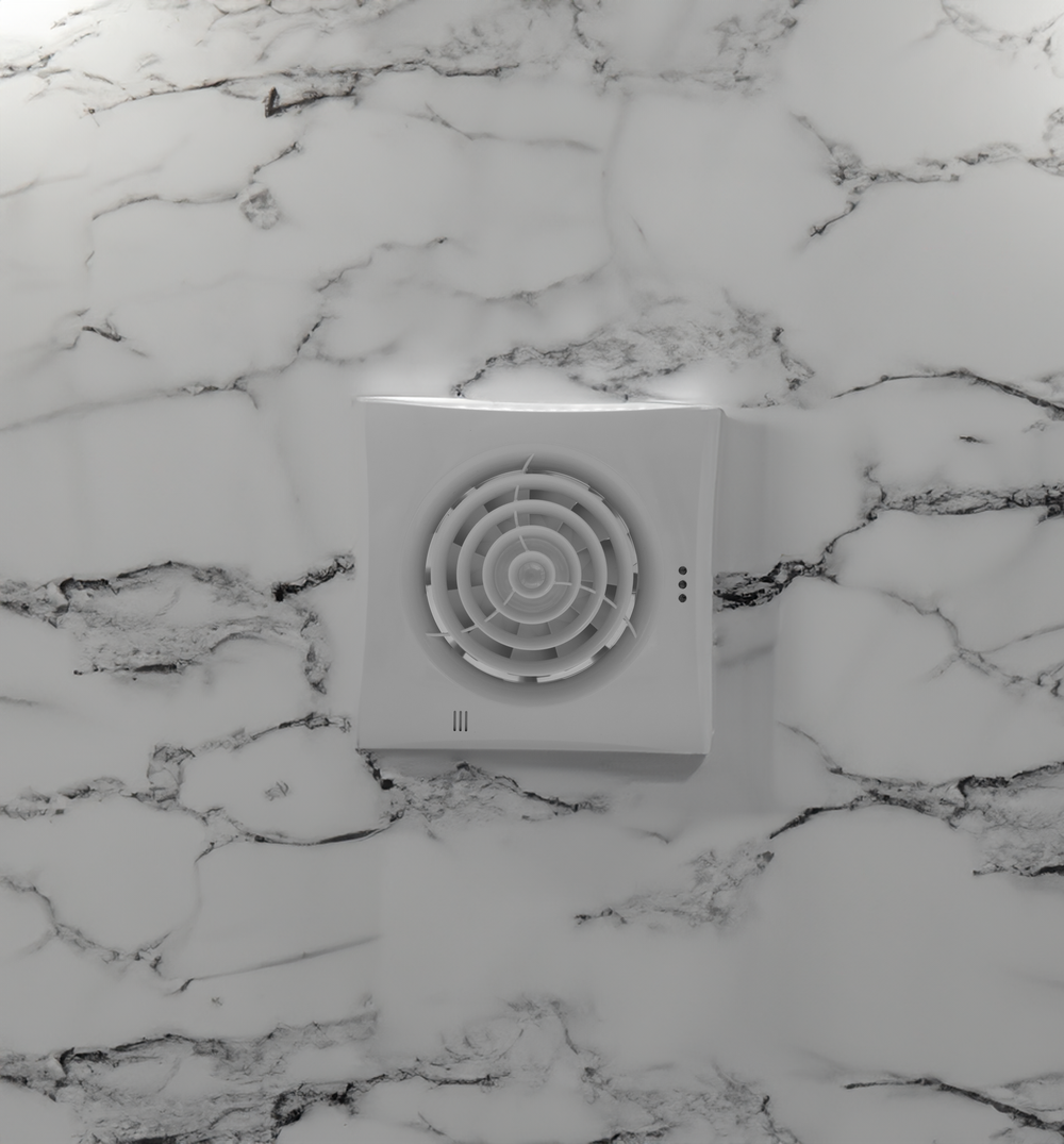 Fuktighetsnivået kan stilles inn etter behov (mellom 60-90% RH), slik at viften starter når luftfuktigheten i rommet overskrider denne grensen og går til luftfuktigheten er under grensen igjen.
